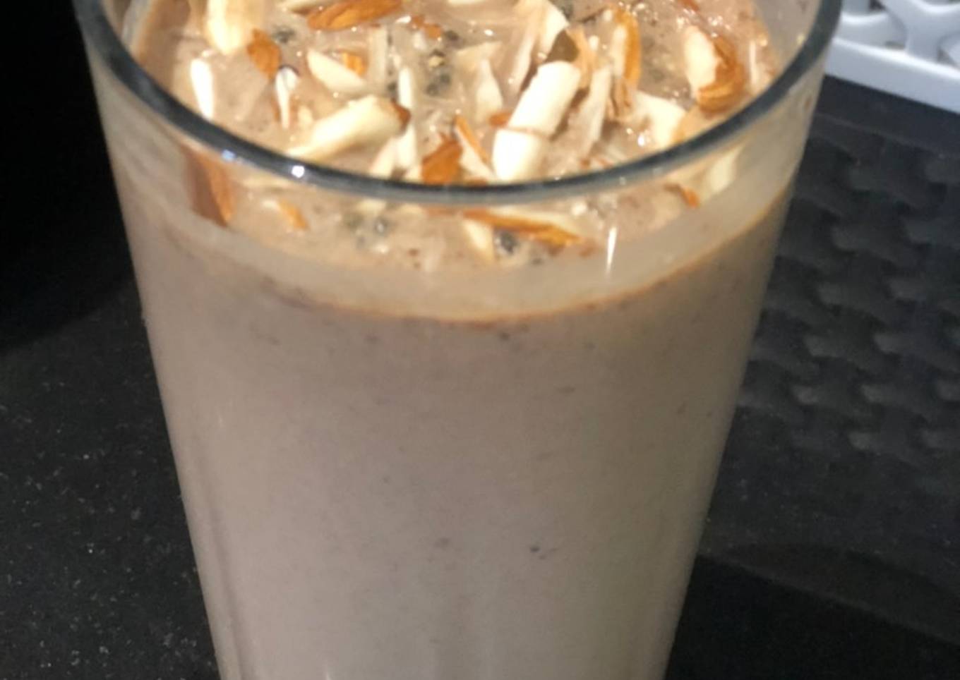 - Take milk add little water then add curd banana dates flax seeds, cocoa powder, coffee powder and blend well together.