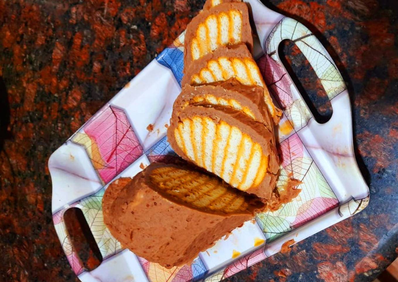 - Cover the whole biscuit stack with the chocolate mix uniformly and keep it in the fridge for 1 hour