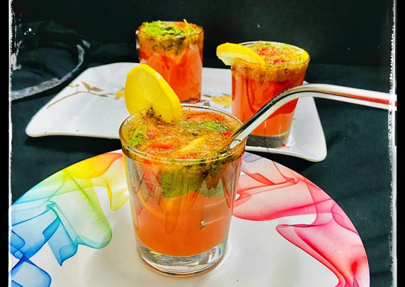 - Pour the mixture into a medium bowl, Then add lemon juice,mint leaves, lemon slice’s and add water mix it well. Taste and add sprite according to you taste.