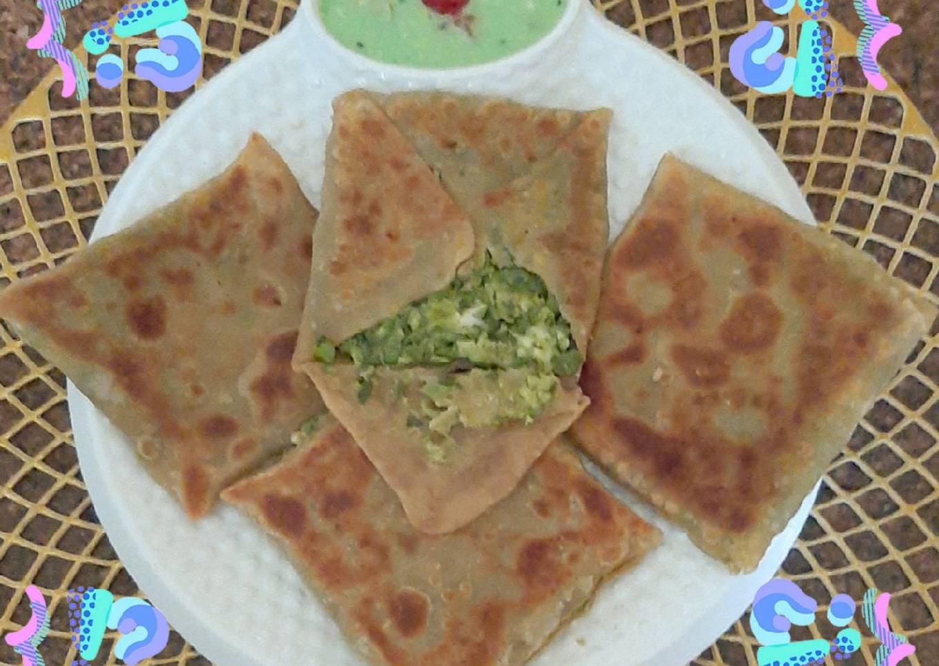 Peas Paneer Cheesy Stuffed Pocket Paratha