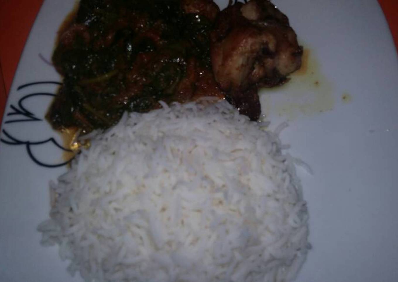 - Serve Basmati Rice with vegetable sauce and a piece of grilled chicken.