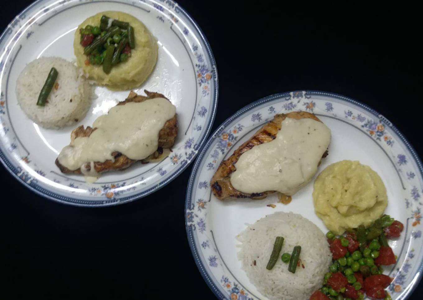 - Marinate chicken with black pepper,crushed chillies,salt.soya sauce,chicken powder,garlic chopped,oregano.keep in fridge for few hours.then grill it in a grilling pan..Soak rice for 15 min n then boil it.fry chopped garlic a little in oil n then add boiled rice n stir it well.keep it aside..chicken n rice r ready..now come to other things