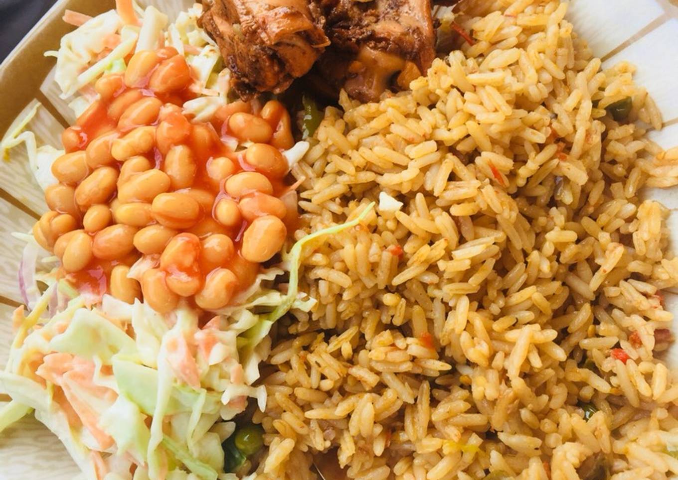 - For the salad, you’ll first wash your cabbage and peel your carrots, after this you’ll cut your cabbage and grate your carrot after then you rinse it and get ready to make mix your carrot,cabbage,mayonnaise And baked beans that’s all of the salad.